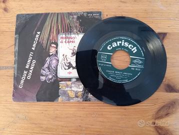 Vendo 6 + 1 bellissimi & rari vinili a 45giri di Peppino di Capri, tutti in buono stato di conservazione (vedi foto). Spese di spedizione a carico di chi acquista. I titoli sono: 01 Nun Songh’Io & Nessuno al Mondo 8.1.1960 Carish, 02 Mai Dire Mai & Lady 23.5.1960 Carish, 03 Luna Caprese & Vicino ‘o Mare 11.7.1960 Carish, 04 I’ Te Vurria Vasà & Notte di Luna Calante 23.9.1960 Carish, 05 5 Minuti Ancora & Quando 21.9.1961 Carish, & 06 Scetate & Le Stelle d’Oro 22.2.1962 Carish. Questo altro titolo è senza copertina, 07 St. Tropez Twist & Daniela 16.4.1962 Carish.