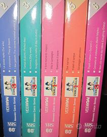 Vendo in blocco, causa mancanza videoregistratore, queste 14 videocassette VHS al prezzo di 21 euro, escluse spese di spedizione.