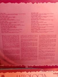Due vinili di Antologia della Canzone Napoletana. Volume 3: dal 1848 al 1874. Volume 5: dal 1888 al 1900.A cura di Giovanni Sarno.Si tratta di album compilation che raccolgono brani storici della musica napoletana, suddivisi per periodi cronologici. I volumi visibili nell'immagine sono il volume 3 (dal 1848 al 1874) e il volume 5 (dal 1888 al 1900). La serie è stata curata da Gianni Sarno (indicato come Giovanni Samo nella copertina) e pubblicata da etichette come EMI Odeon.- si vende così come si vede sono in ottimo stato -