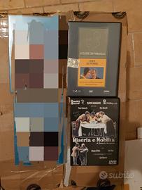 Vendo lotto di 23 importanti DVD (in realtà sono 24) con importanti commedie teatrali fatte per andare in onda in TV sulla RAI, quasi tutte interpretate da Eduardo de Filippo e con qualche perla famosa: - Il medico dei pazzi (con E.de Filippo) - Il berretto a sonagli (con E.de Filippo) - Bene mio e core mio (con E.de Filippo) - De Pretore Vincenzo (con E.de Filippo) - Natale in casa Cupiello versione del 1962 (con E.de Filippo) - Natale in casa Cupiello versione del 1977 (con E.de Filippo) - Filomena Marturano (con E.de Filippo) - Sogno di una notte di mezza sbornia (con E.de Filippo) - L'abito nuovo (con E.de Filippo) - Mia famiglia (con E.de Filippo) - Gli esami non finiscono mai (con E.de Filippo) - L'arte della commedia (con E.de Filippo) - La paura numero uno (con E.de Filippo) - Miseria e nobiltà (con E.de Filippo) - Ditegli sempre di si (con E.de Filippo) - Napoli milionaria (versione teatrale con E.de Filippo) - La grande magia (con E.de Filippo) - Cinque atti unici in bianco e nero (con E.de Filippo) - Il contratto (con E.de Filippo) - Due atti unici a colori (con E.de Filippo) - Lu curaggio de nu pumpiero napulitano (con E.de Filippo) - 'Na santarella (con E.de Filippo) - Così è se vi pare (a teatro con Pirandello) - Miseria e nobiltà di Eduardo Scarpetta (con Enzo Cannavale) I DVD contengono anche extra, come documentari su Eduardo de Filippo, suoi pensieri o la versione radiofonica del 1959 di Natale in casa Cupiello sempre con Eduardo. Da notare l'edizione speciale Collector's edition di Natale in casa Cupiello e l'edizione speciale di Lu curaggio de nu pumpiero napulitano. Sono 23 confezioni con 24 DVD, perché Natale in casa Cupiello contiene 2 DVD con 2 versioni diverse. Tutti i DVD sono in ottime condizioni.