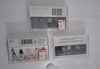 3 audiocassette anni 90 delle Spice Girls. 1) SPICE: non originale 2) SPICE WORLD: originale + testi canzoni 3) SCHIZO-PHONIC (Geri Halliwell): originale + testi canzoni