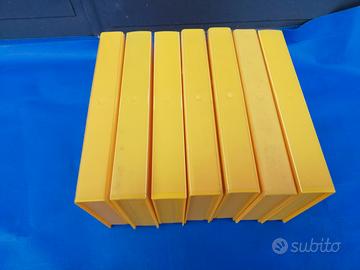 Lotto di 32 custodie in plastica gialla complete di portalocandina esterno, tutte in ottime condizioni