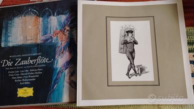 3 vinili con l' opera Il flauto magico + libretto in inglese, francese e tedesco. Esegue l' orchestra Berliner Philarmoniken diretta da Karl Böhm