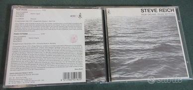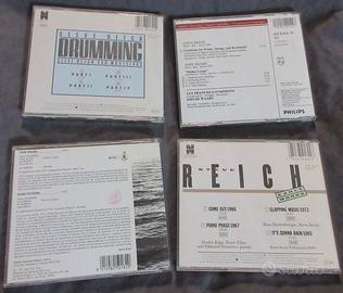 4 CD contenenti i primi storici lavori di Steve Reich: 1) "Early Works", pubblicato nel 1987 dalla etichetta Nonesuch con codice 979 169-2 2) "Drumming", pubblicato nel 1987 dalla etichetta Nonesuch con codice 979 170-2 3) "Four Organs / Phase Patterns", pubblicato nel 1994 dalla etichetta New tone/Robi droli con codice rdc 5018 -129805018 2 (a suonare un ensemble di assoluto prestigio: Jon Gibson, Art Murphy, Philip Glass, Steve Chambers e lo stesso Steve Reich) 4) "Variations for winds, strings and keyboards / Shaker loops", pubblicato nel 1984 dalla etichetta Philips con codice 412 214-2 (il secondo brano appartiene al compositore John Adams) Libretti in buono stato. Cd perfetti all'ascolto. Il prezzo si riferisce alla vendita in blocco dei 4 dischi.