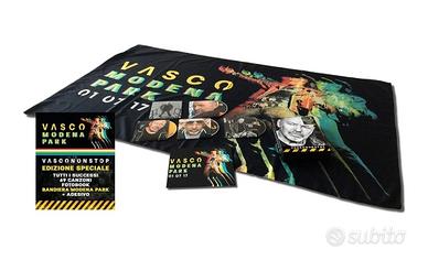 Cofanetto VASCONONSTOP contenente 4 CD, l'esclusiva bandiera "Vasco Modena Park" e l'adesivo dell'evento . Nuovo, mai usato.