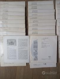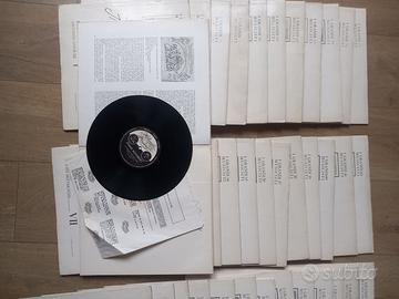 41 dischi in vinile a 33 giri con diametro 25cm, raccolta periodica settimanale anno 1965 (COLLEZIONE I GRANDI MUSICISTI), completi di custodia e cartella con tasca interna riponi disco (solo 7 dischi non presentano la custodia di carta originale, ma di plastica). La carta ha assunto il tipico odore di carta vecchia. Ritiro in loco.