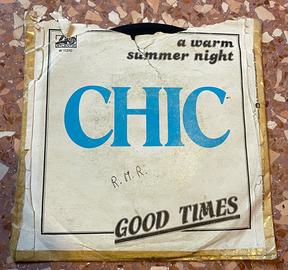 Disco in vinile 45 giri del gruppo Chic, con la celebre traccia Good Times.