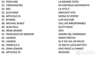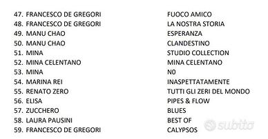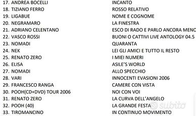 Come vedete dall'elenco allegato sono quasi esclusivamente autori italiani(Vasco, Degregori, Celentano, Zucchero....) e solo alcuni di star internazionali(CHER,BRYAN ADAMS...).