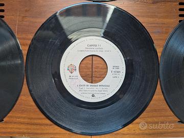 Vendo lotto di 6 dischi 45 giri originali italiani, perfetti per i nostalgici dell'infanzia e collezionisti di fiabe sonore e sigle TV d'epoca.