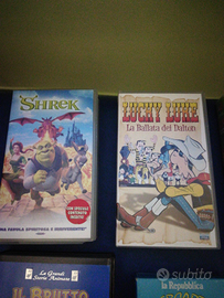 7 VHS originali vari Shrek,luchy Luke,bugs bunny e daffi duck,il brutto anatroccolo, Asterix,supercartun,charlye In perfette condizioni seminuove!