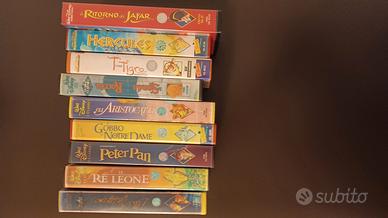 9 VHS Walt Disney: Gli Aristogatti, Peter Pan, Il Re Leone, La Spada nella Roccia, Il Gobbo di Notre Dame, T come Tigro, Lilli e il vagabondo, Hercules, Il ritorno di Jafar