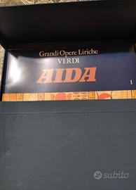 Cofanetto in cartone contenente dischi in vinile dell'opera Aida di Giuseppe Verdi, parte della collana Grandi Opere Liriche. All'interno è presente anche il libretto