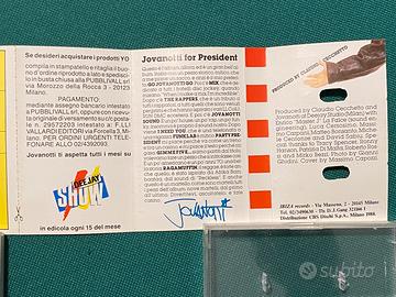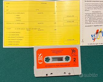 Audiocassetta Jovanotti “For President”, 1988, CBS, rarità con la cartolina per l’acquisto dei gadget (in lire italiane). Nastro intatto, gira perfettamente (arrotolato con la classica penna Bic). Non viene ascoltata da oltre trent'anni: non ho un mangiacassette per testarla, ma non vedo motivi per cui non debba ancora funzionare. Venduta con formula "vista e piaciuta”