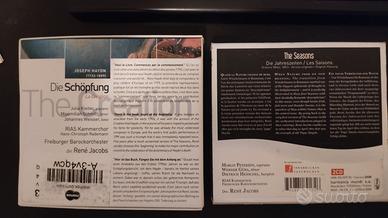 CD ORIGINALI!!! Splendide edizioni di alcuni fra i massimi capolavori della musica sacra del Settecento: JOHANN SEBASTIAN BACH "Weihnachts-Oratorium" BWV 248 (1734) Edizione HARMONIA MUNDI 2014 Registrazione del 1997 RIAS Kammerchor / Akademie für Alte Musik Berlin - dir. René Jacobs & "Messa in SI minore" BWV 232 (1749) Edizione HARMONIA MUNDI 2022 RIAS Kammerchor / Akademie für Alte Musik Berlin - dir. René Jacobs GEORG FRIEDRICH HÄNDEL "Messiah" (1741) Edizione HARMONIA MUNDI 2011 Registrazione del 2006 The Choir of Clare College / Freiburger Barockorchester - dir. René Jacobs FRANZ JOSEPH HAYDN "Die Schöpfung" (1798) Edizione HARMONIA MUNDI 2009 RIAS Kammerchor / Freiburger Barockorchester - dir. René Jacobs & "Die Jahreszeiten" (1801) Edizione HARMONIA MUNDI 2008 Registrazione del 2004 RIAS Kammerchor / Freiburger Barockorchester - dir. René Jacobs Tutto in ottime condizioni!!! SOLO BACH: 24,00 EURO SOLO HANDEL: 12,00 EURO SOLO HAYDN: 24,00 EURO TUTTI I COFANETTI: 52,00 EURO