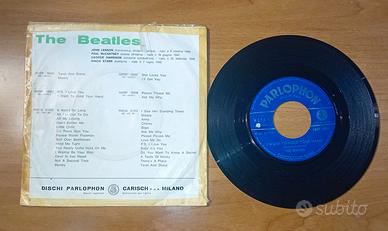 Vinile 45 giri, Parlophon, datato 2/1/64. Copertina parzialmente rovinata da nastro adesivo di rinforzo e firma di proprietà ma leggibilissima. Date di nascita sul retro. Tra i primissimi venduti in Italia.