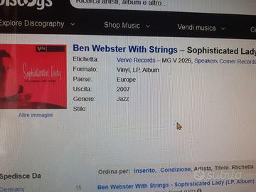 Speakers Corner Records, 2007 – AAA, Pallas prestigiosa ristampa Speakers Corner (2007) del classico Sophisticated Lady di Ben Webster With Strings, codice MG V‑2026, realizzata in mastering completamente analogico (AAA) e pressata su vinile 180g da Pallas (Germania), una delle migliori presse al mondo.