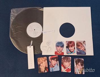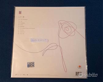 LP 12'' di Love Yourself: Her dei BTS in confezione trasparente. Contiene jacket vinile in cartoncino bianco, vinile, poster con i testi, poster del gruppo, adesivo, segnalibro e 7 photocard. Ascoltato una volta, nessun danno visibile. Prezzo non trattabile (originariamente pagato 64€ su Mondadori)