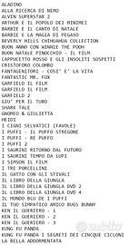 Vendo 67 dvd titoli vari cartoni animati. Vendo in blocco o singolarmente a 2€ cad. Nelle foto ho inserito l'elenco completo dei dvd disponibili, per dettagli contattatemi su subito.