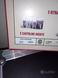 Lo fanno attraverso una mostra e questo esclusivo Box Deluxe Numerato ed in Edizione Limitata che contiene due vinili 180 gr, un CD, un libretto di 20 pagine con i bozzetti originali della mostra e foto live, 5 spillette da collezione, 5 cartoline con immagini inedite e 5 ritratti del grande fotografo Guido Harari scattati a Palazzo Masdoni, storica sede del PCI di Reggio Emilia.