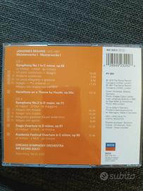 Vendo prestigioso doppio CD della serie "Double Decca" dedicato ai capolavori di Johannes Brahms. Le registrazioni vedono protagonista la Chicago Symphony Orchestra diretta dal leggendario Sir Georg Solti, una delle interpretazioni più potenti e celebrate di questo repertorio.