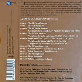 Vendo cofanetto Musica Classica (33CD) Beethoven - Barenboim = Piano Sonatas, Diabelli Variations, Violin Sonatas, Cello Sonatas, Piano Trios, Piano Quintet, Piano Concertos, Violin Concerto, Triple Concerto, Choral Fantasy, Symphonies, Fidelio ATTENZIONE - CD 32-33, Missa Solemnis, MANCANTI
