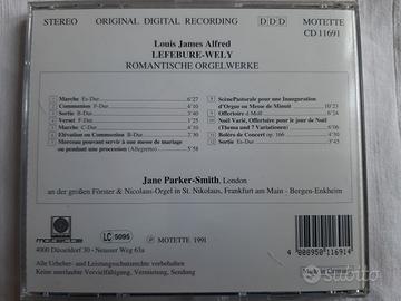 Vendo CD musica per organo Bach Orgelwerke IV - -organworks IV Oeuvres pour orgue IV Praludium Fuge G-dur BWV 541 Fuge g-moll BWV 578 Pastorale F-dur BWV 590 Ton Koopman Dreifaltigkeitsorgel der Basilika Ottobeuren Etichetta Novalis A 8,00 Louis James Alfred Lefebure-Wely Romantische Orgelwerke Jane Parker-Smith London an der groben Forster & Nicolaus-Orgel in St.Nikolaus Frankfurt am Main - Bergen-Enkheim Etichetta Motette A 8,00 2cd Louis Vierne - Günther Kaunzinger – 24 Pieces In Free Style Etichetta Koch Schwann Musica Mundi Austria 1989 A 10,00 Orgel (2 cd) Guy Bovet Andreas Sieling Philarmonie Berlin Musikinstrumenten-Museum Ein fest fur die konigin prasentiert von Ulrich Eckhardt Etichetta Note&Ton 2013 10,00