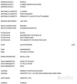 Vendo CD musica vari. Per l'elenco dei cd disponibili vedi foto foto. Prezzo trattabile se acquistati in blocco (64 cd), singolarmente 2 € cad.