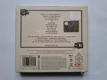 30th Anniversary Collectors Edition. CD & DVD. 2 disc set including a remastered CD, plus a DVD with DTS 5.1 Surround Sound and 24 bit Stereo. Featuring the original videos for "Bohemian Rapsody" and "You're my best friend" plus 10 new videos, all with archive audio commentary by Queen. 2005. CD originale nuovo, sigillato e con bollino SIAE. Mai aperto, come da negozio.