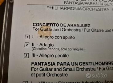 CD "Rodrigo: Concierto de Aranjuez / Fantasía para un Gentilhombre" Ottime condizioni ,piccola macchia di sporco sul libretto foto 5 interpretato dal celebre chitarristaJohn Williams. John Williams esegue ilConcierto de Aranjueze laFantasía para un gentilhombredi Joaquín Rodrigo, con la Philharmonia Orchestra diretta da Louis Frémaux.