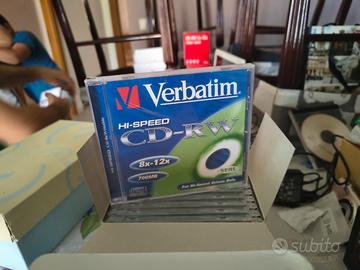 Confezione di CD-RW Verbatim ad alta velocità. - Velocità di scrittura 8x-12x. - Capacità di 700MB. - Ideali per unità ad alta velocità.