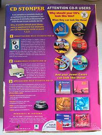 CD Stomper Pro CD Labeling System è un kit d'epoca utilizzato negli anni '90 per progettare, stampare e applicare etichette personalizzate sui CD/DVD. Grazie al software incluso nel kit permette di creare etichette professionali per CD/DVD e copertine per custodie. Il processo si divide in tre fasi: progettazione tramite software, stampa con stampanti a getto d'inchiostro o laser, e applicazione precisa tramite l'apposito strumento incluso nel kit. Naturalmente è possibile anche utilizzare altri software per la progettazione/stampa delle etichette. La presente offerta comprende oltre al kit sopra menzionato anche dei fogli da utilizzare per la stampa delle etichette sia originali CD Stomper (24) e sia di altri marche come la Pelikan (36). Le foto nel dettaglio evidenziano l'ottimo stato di conservazione.
