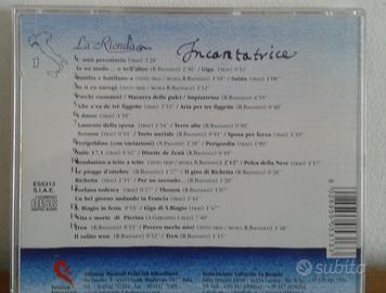 1cd) Incantatrice, la Rionda, pubblicazione 2001, contiene 35 canzoni (elenco:l'amù peceninetu 2) in un modo..o nell'altro 3) Giga 4) Battilìn e battilann-a 5) Suittu 6) Ne ti eu navegà 7) Parchi suonatori 8) Mazurca delle pulci 9) Impiastrino 10) Ghe n'ea de trè figette 11) Aria per tre figette 12) Lamento della sposa 13) Terre alte 14) Scosese 15) Torto nuziale 16) Sposa per forza 17) Perigoldino(con variazioni) 18) Perigordin 19) Suite 20) Disette de Zenà 21) Rondaninn-a a teito a teito 22) Polca della neve 23) Le piogge di ottobre 24) il giro di Richetta 25) per un secondo 26) Forlana todesca 27) Thonon 28) Un bel giorno andando in Francia 29) San Biagio in festa 30) Giga di San Biagio 31) Vita e morte di Pierina 32) Tren 33) Povero merlo mio! 34) il solito tren 35) Tren;