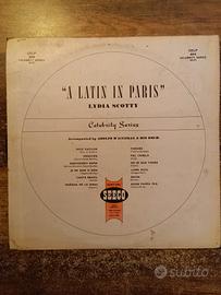 Disco in vinile vintage della serie "Celebrity Series" pubblicato dall'etichetta discografica Seeco. Ecco alcuni dettagli sul disco: Titolo:"A Latin in Paris" Artista:Lydia Scotty Accompagnamento:Adolfo Waitzman & his Orch. Numero di catalogo:CELP 404