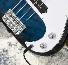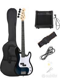 Chitarra Basso Elettrico 4 Corde con Amplificatore 15W, Borsa, Tracolla e Plettri, Colore Blu Scuro