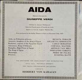 Dischi in ottime condizioni cofanetto corredato da libretto. Registrazione storica del 1959 con la Vienna Philharmonic Orchestra diretta da Herbert von Karajan, considerata un punto di riferimento per le performance di Renata Tebaldi e Giulietta Simionato.