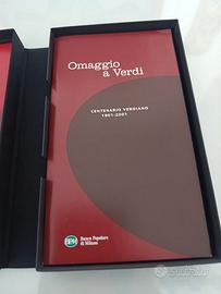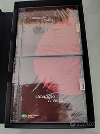 Raffinato cofanetto da collezione "Omaggio a Verdi", raccolta di musiche del compositore parmense, eseguite dall’Orchestra e Coro del Teatro alla Scala di Milano, sotto la direzione del Maestro Riccardo Muti.