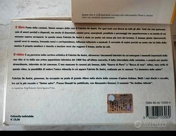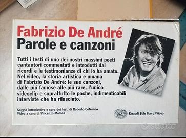 Il libro contiene tutti i testi delle canzoni di De Andrè. Nella videocassetta c'è una raccolta di 16 canzoni tra le più significative dell'autore (visibili in foto). Comprato nel 2005