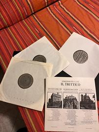 Cofanetto contenente 3 lp 33 giri più libretto del trittico di Giacomo Puccini: Gianni schicci, sorangelica, il tabarro dirette da lorin mazel