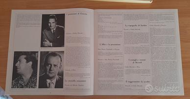 Cofanetto dell'opera Tosca di Giacomo Puccini, rara edizione celebrativa per il Bicentenario del Teatro alla Scala (1778-1978), pubblicata dall'etichetta EMI - La Voce del Padrone. Versione che vanta il cast leggendario che ha fatto la storia della lirica: Floria Tosca - Maria Callas, Mario Cavaradossi - Giuseppe di Stefano, Il Barone Scarpia - Tito Gobbi, direttore Victor de Sabata (Orchestra e Coro del Teatro alla Scala). Incluso il libretto originale completo con testi e illustrazioni. I vinili sono in eccellenti condizioni senza graffi e lucenti, il cofanetto è il libretto hanno qualche segni del tempo (macchioline).