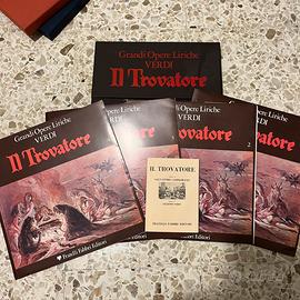 Si tratta di una collezione di cofanetti di dischi in vinile a 33 giri intitolata "Grandi Opere Liriche" di Giuseppe Verdi, pubblicata da Fratelli Fabbri Editori negli anni '70. Ogni cofanetto include i vinili e un libretto illustrativo dell'opera. Dettagli del Prodotto I quattro cofanetti presenti nell'immagine contengono le seguenti opere: Il Trovatore La forza del destino Rigoletto Aida