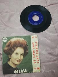 5 dischi 45 giri di Mina,in vinile,con la copertina,anni 60. Titoli: Parole parole/Adagio, Io amo tu ami/Come sinfonia, S'è fatto tardi/Confidenziale, È vero/ Perdoniamoci, Non sei felice/Invoco te. Ci possono essere imperfezioni, dovute al trascorrere del tempo e all'utilizzo, sulle copertine e sui dischi. È possibile acquistare anche i dischi preferiti, se non interessati all'intera collezione.