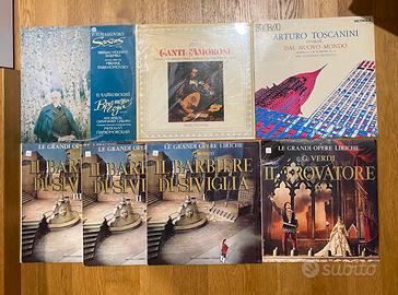 Cofanetti (Box Set) e Album Principali • J.S. Bach – Oratorio di Natale (Weihnachts Oratorium): Edizione Decca (etichetta bianca), con Elly Ameling, Peter Pears e la direzione di Karl Münchinger. • Robert Schumann – Lieder: Edizione Deutsche Grammophon (DGG), interpretati dal baritono Dietrich Fischer-Dieskau e dal pianista Christoph Eschenbach. • J.S. Bach – 6 Sonate e Partite per violino solo (BWV 1001-1006): Edizione Philips (serie "Living Baroque"), eseguite dal violinista Felix Ayo. • Charles Gounod – Faust: Edizione EMI / La Voce del Padrone (cofanetto rosso), con Placido Domingo, Mirella Freni, Nicolai Ghiaurov e la direzione di Georges Prêtre. • Frédéric Chopin – Etudes, Préludes, Polonaises: Edizione Deutsche Grammophon, interpretate dal pianista Maurizio Pollini. • Giuseppe Verdi – Requiem: Edizione RCA Victor (serie Dynagroove), con la Boston Symphony Orchestra diretta da Erich Leinsdorf. • Motivi Celebri di Tutto il Mondo: Un cofanetto antologico (si vedono le buste numerate da 1 a 10) che raccoglie brani famosi del repertorio internazionale. Album Singoli e Serie Editoriali • P.I. Tchaikovsky – Le Stagioni (The Seasons): Eseguite dal Siberian Violinists Ensemble, diretto da Mikhail Parkhomovsky (etichetta Melodiya/EMI). • Canti Amorosi: Eseguiti dal tenore Nigel Rogers (etichetta Archiv Produktion), con musiche di Caccini, Peri, Saracini, ecc. • Arturo Toscanini / Dvořák – Dal Nuovo Mondo: Sinfonia n. 9, con la NBC Symphony Orchestra (etichetta RCA Victrola). • Le Grandi Opere Liriche (Fratelli Fabbri Editori): Una celebre collana editoriale italiana degli anni '60/'70. Nelle foto si vedono: • Gioachino Rossini – Il Barbiere di Siviglia: Cofanetto completo in tre volumi (I, II, III). • Giuseppe Verdi – Il Trovatore: Volume IV. Ritiro a domicilio a carico dell’acquirente Anche acquistabili separatamente su richiesta