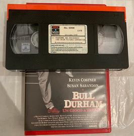 1) vhs film “Bull durham” anno 1988, il film si vede in modo perfetto ma nella presentazione c’è qualche distorsione del nastro; il biglietto in foto è stato scritto da chi ce la vendette al tempo quindi la comprammo già così