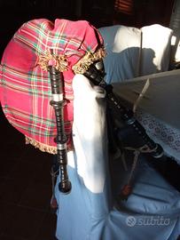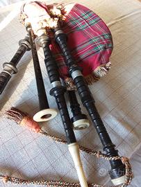 Cornamusa scozzese in palissandro con figure nere supporti color argento Royal Stewart.