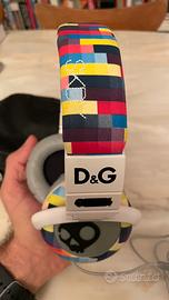 stilose cuffie Dolce&Gabbana in limited edition nate dalla collaborazione con Skullcandy. La maison ha stretto la collaborazione con il marchio di cuffie più amati da star come Jay-Z e le ha vestite a festa, soprattutto i modelli Lowrider. Nulla da dire, le cuffie sono veramente glamour, con il celebre logo D&G in vista.