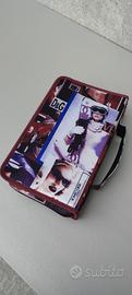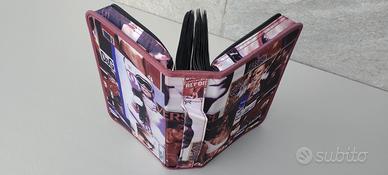 Pratica custodia per conservare CD e DVD, con una vivace stampa collage.