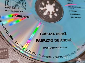 Fabrizio De Andrè "Creuza de Ma" CD originale del 1984 timbro SIAE no etichetta, appartiene prime stampe, tutto originale anche la custodia con supporto CD vintage, i successivi avevano più dentini ferma disco, realmente da collezione. Condizioni ottime quasi nuovo visto l'epoca di produzione, CD nessun segno.