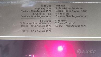 Vendo doppio vinile 33 giri del leggendario live Made in Japan dei Deep Purple, registrato durante il tour giapponese del 1972. Il disco è nuovo e sigillato, in condizioni perfette sia il vinile che la copertina. Considerato uno dei migliori album live della storia del rock, questa edizione include le registrazioni originali dei concerti di Osaka e Tokyo, con una qualità audio rimasterizzata.