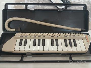 Strumento musicale a fiato e tastiera con custodia rigida in plastica nera facile da trasportare.