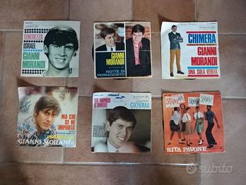 Dischi 45 giri anni '70 di vari cantanti: Gianni Morandi, Rita Pavone, Umberto Tozzi, Milva, Domenico Modugno, Jimmy Fontana, Renato Rascel, Iglesias, Tony Dallara, I Cugini di campagna etc.